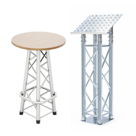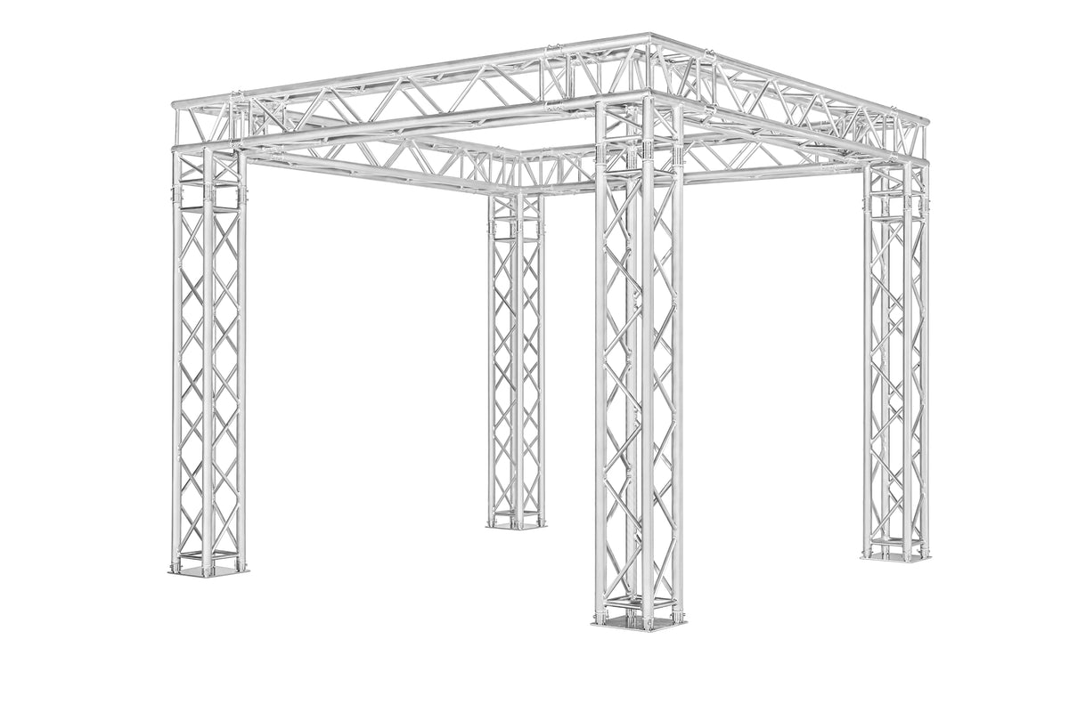 The Aluminum Truss Booth 5x5 m is a versatile, enclosed structure engineered to elevate your event setup. Constructed from Milos Systems’ renowned M290 series aluminium truss, this booth comprises 8 pieces of 6.56 ft truss, 8 pieces of 8.2 ft truss, 4 three-way 90-degree corners, and a solid steel base. Its distinctive four-legged, enclosed design distinguishes it from open gate systems, delivering a stable and professional solution for creating impactful, self-contained spaces.