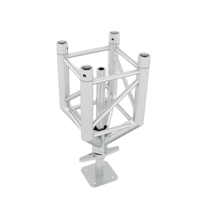 The LEGM390L|572-950 Adjustable Pedestal Leg is a dependable and adaptable leveling accessory tailored for the M390 Quatro truss series in its heavy-duty "L" configuration, enabling fine-tuned height adjustments to handle uneven ground in professional event, stage, or exhibition installations. This screwjack pedestal leg delivers critical stability for truss bases, roofing systems, or bespoke furniture arrangements, supporting secure setups without extra shims or supports. Engineered to European standards, it's a vital tool for truss experts optimizing their structures or those new to rigging, ensuring reliable performance across varied terrains.