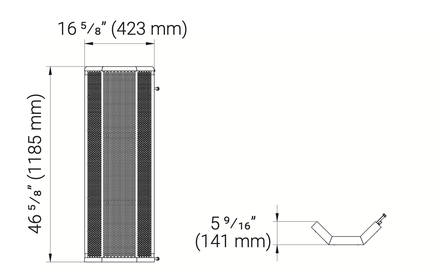 - Dimensions: 16 5/8" (423 mm) wide x 5 9/16" (141 mm) deep x 46 5/8" (1185 mm) tall.