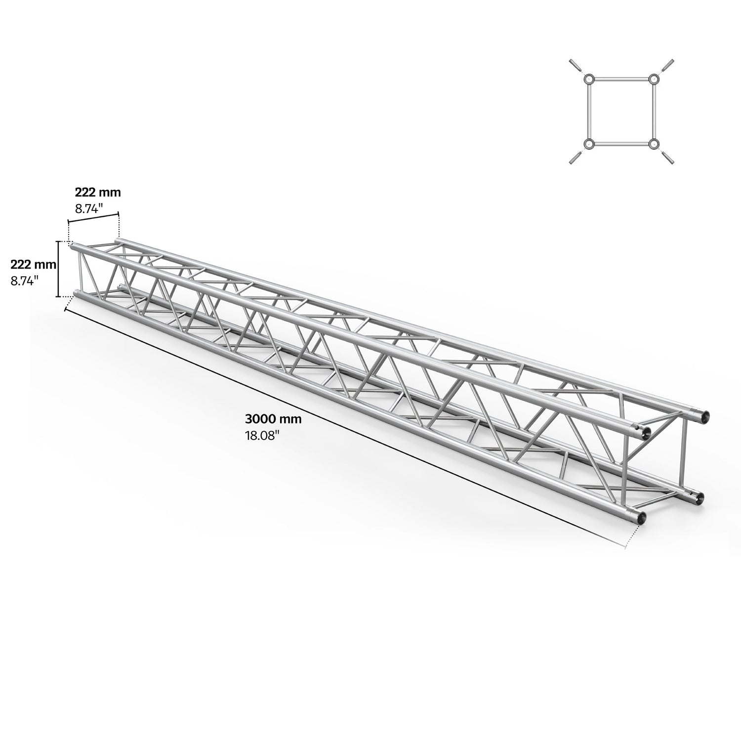 Introducing the M222 Quatro 9.84ft Length Truss, a versatile and robust solution designed to meet your structural needs with ease. As part of the trusted M222 Quatro series, this truss combines exceptional strength and stability with a lightweight design, making it an ideal choice for professionals and enthusiasts alike. Measuring 9.84 feet (3 meters) in length, it’s perfect for creating expansive spans and supporting heavy loads, all while maintaining the durability and rigidity that the quatro design is known for.