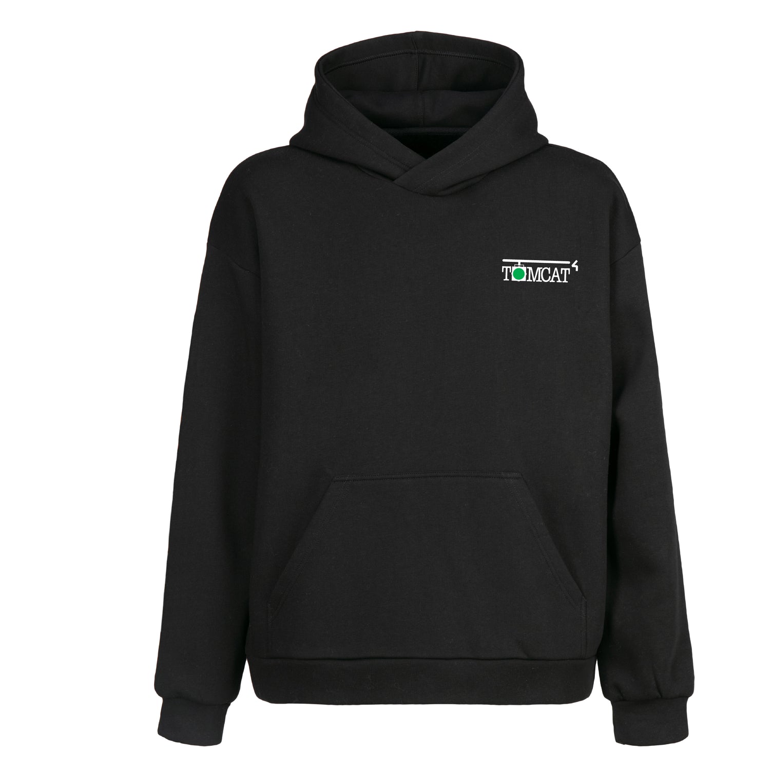 Front: A subtle yet striking logo sits on the left chest, featuring "TOMCAT" in crisp white uppercase letters with a bold green dot accent. It’s professional, understated, and screams crew pride.